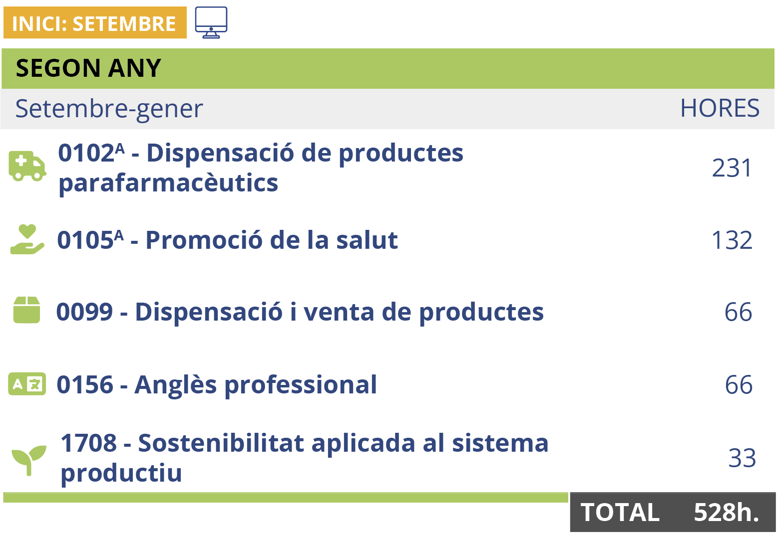 | Tècnic/a en FARMÀCIA I PARAFARMÀCIA |
